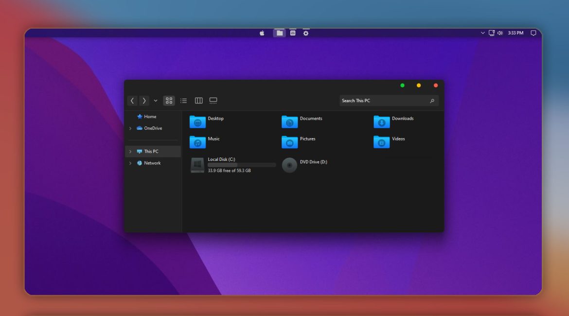 MacOS Monterey Dark v2 Theme for Windows 11